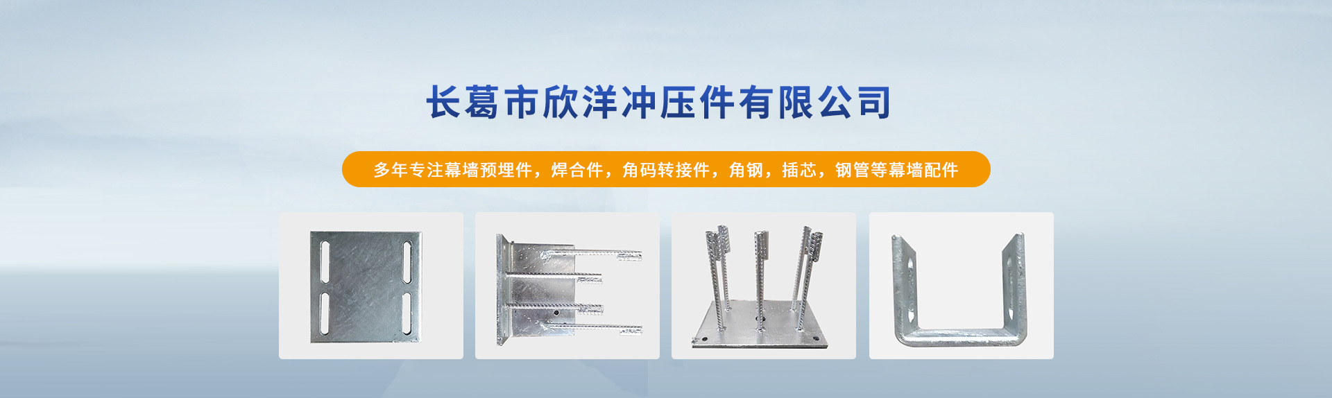 長葛市欣洋沖壓件有限公司專業從事幕墻預埋件,焊合件,角碼轉接件,角鋼,插芯,鋼管等幕墻配件的建材供應商。